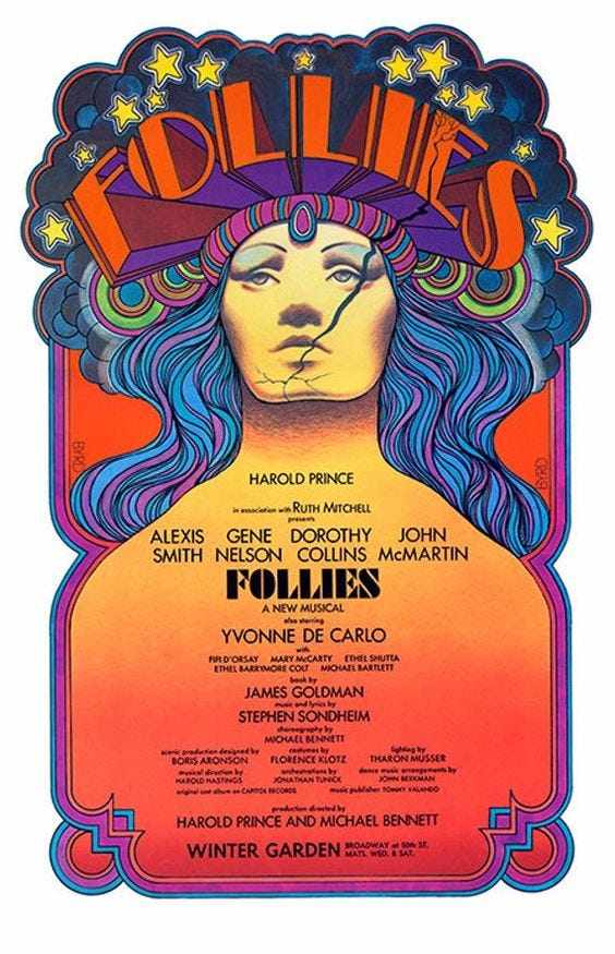 For the most comprehensive look at how Follies came to be, Ted Chapin’s indispensable memoir Everything Was Possible is a must-read. A youthful and unpaid assistant at the time, he kept a diary (bless him) that’s everything and more than you could possible want (and it’s well written, too).